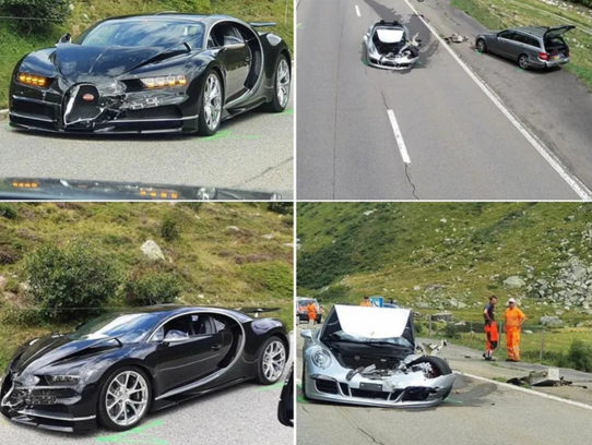 布加迪Chiron和保时捷911 Cabrio在瑞士坠毁