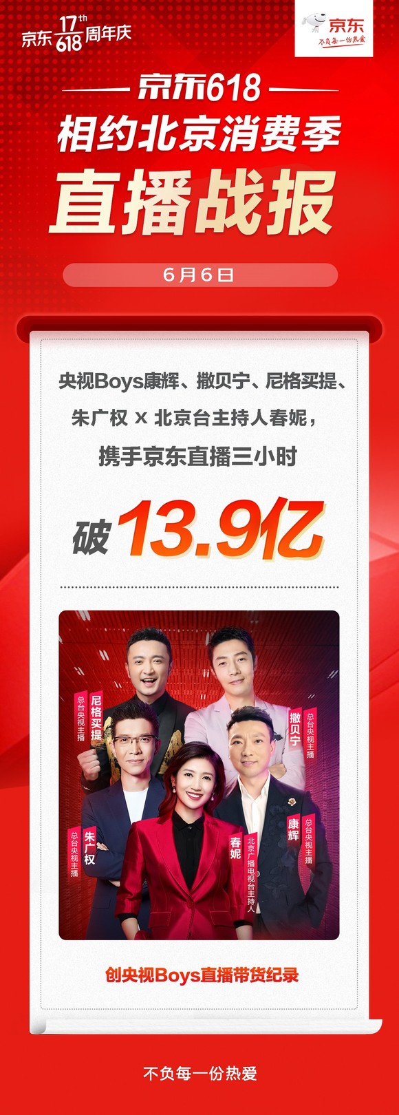 破纪录!央视Boys+春妮携手京东直播三小时破13.9亿!