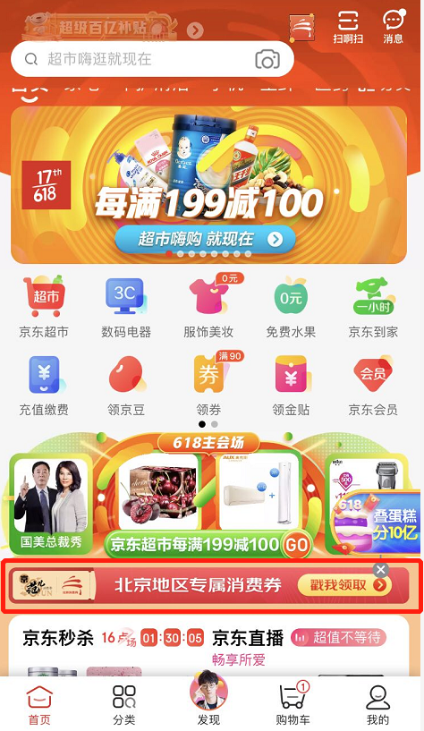 北京消费季的开启正逢京东618活动期间。今年的京东618推出了超级百亿补贴、千亿优惠和百亿消费券,提供超过2亿件的五折商品,包括海量电脑数码、家电、日用消费品、美妆、家居家装产品以及服饰等商品,甚至还有超千套房源低至5折起拍,力争打造史上优惠力度最大,购物体验最佳,品牌、商家增长最强和新品发布最多的一次京东618。