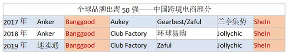 2019年底,Facebook联手毕马威发布了全球品牌出海50强榜单。自该榜单推出以来,中国跨境电商仅有两家连续三年榜上有名,SHEIN就是其中之一,Club Factory也表现不凡,连续两年上榜。