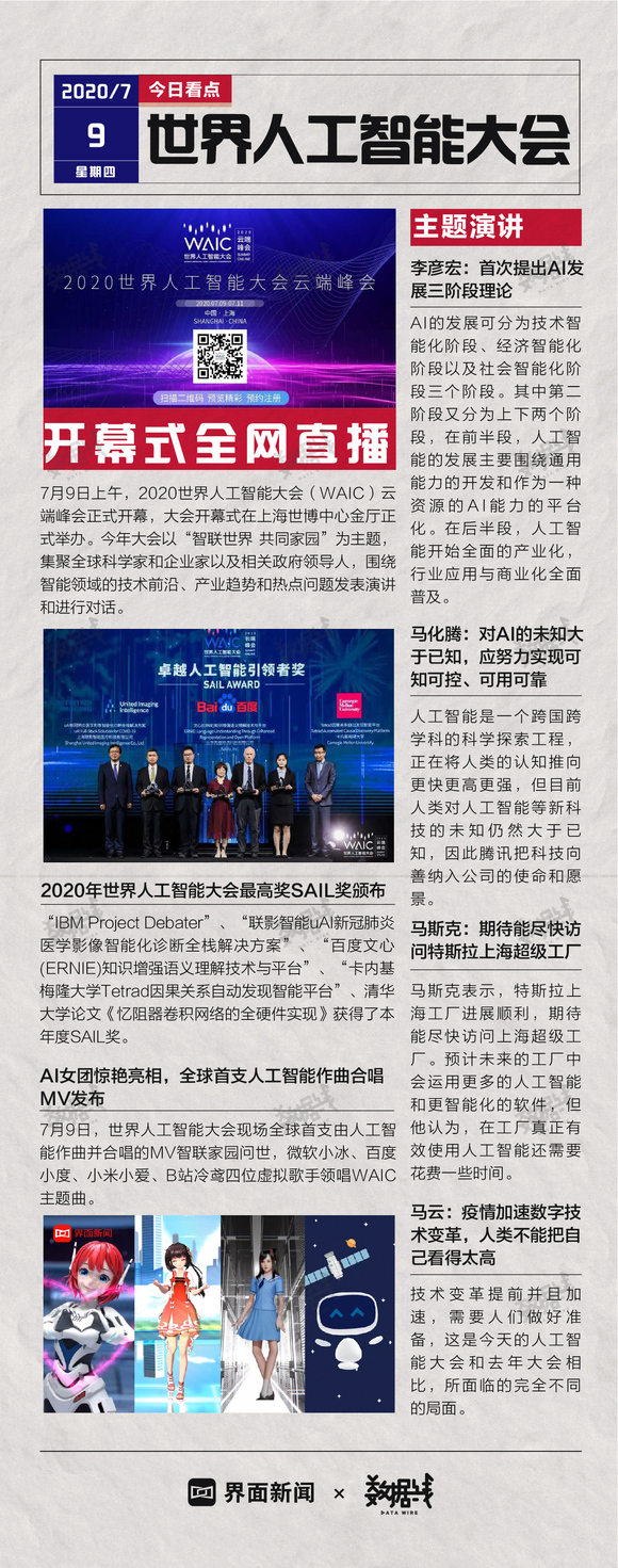 7月9日上午,2020世界人工智能大会(WAIC)云端峰会正式开幕,大会开幕式在上海世博中心金厅正式举办。