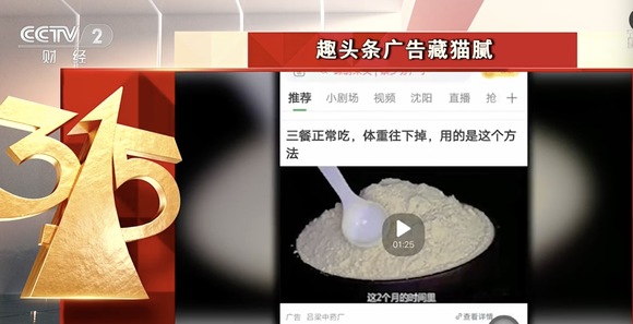 在央视曝光的截图中,一则趣头条上的广告号称“10万瘦身体验装免费领取,可快速减肥、月瘦30斤、永不反弹”,涉嫌虚假推广。