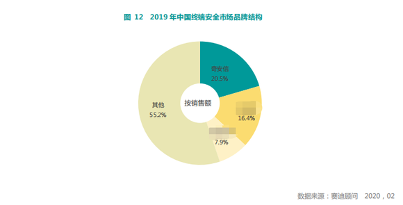 在终端安全市场,随着移动互联网、物联网的快速发展,终端设备的数量呈现指数级增长态势。近几年来,终端安全产品(包括终端安全管理、终端防病毒、终端流量监测等)备受关注,2019 年的市场规模达到 31.7 亿元,增长率为 20.6%。奇安信在此领域以20.5%的市场份额排名第一。近日,奇安信独家中标中国联通终端安全管理项目,成为国内最大规模的终端安全项目之一,是市场对于奇安信终端安全能力的再次认可。