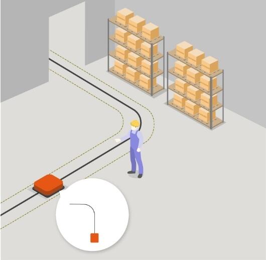 实体导引线不便于变更,而且需要维护,为了解决这个问题,后来出现了依靠反光板和定位激光雷达的有反光板激光定位技术,这类AGV解决了环境区域定位的问题,可以在软件层面进行AGV的导引,我们称为软导引技术。