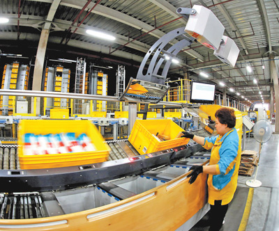 “传统仓库作业,每单仓配时效为3小时左右。我们目前实现平均每单仓配时效仅为3—5分钟,峰值拣选商品可达到2000件/小时,单件商品分拣成本下降50%,实现库存结构优化,加快库存周转,降低滞库率。”苏宁易购IT总部执行总裁荆伟说,通过持续的科技转型和投入,整个集团在商品供应链的数字化上取得了丰硕成果,尽最大努力按照消费者需求完成智能化的选品、智能化商品库存管理。