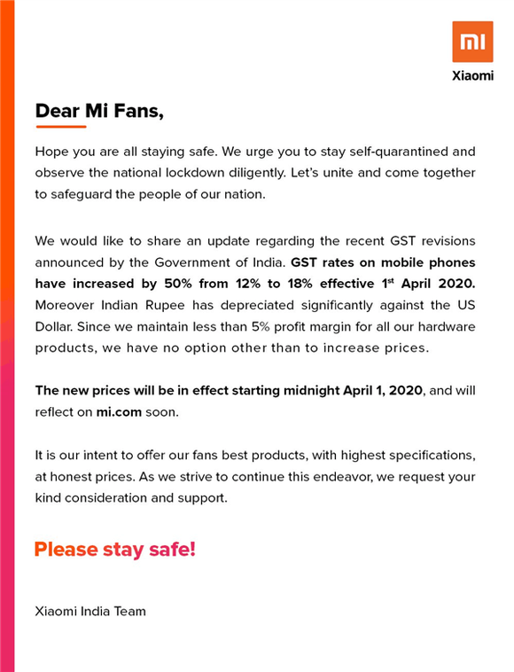 小米印度官方公告