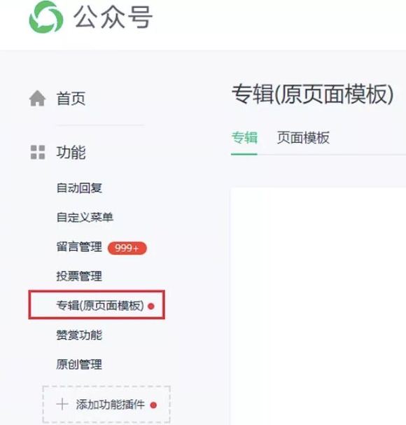 一周前,据新榜报道,微信公众号后台将原“页面模板”升级成了“专辑“功能。