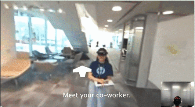 当然,办公室同事需要带上AR头显设备。远程工作者“化身”身边的机器人的辅助,远程工作者和办公室在场工作者可以“在一个时空汇聚”,看到彼此并打招呼。