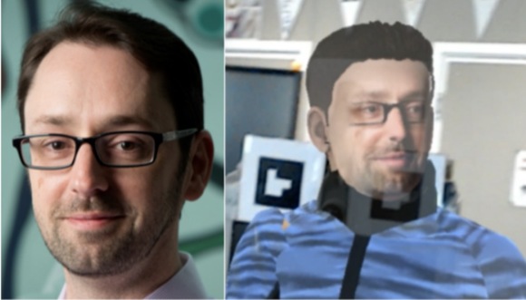 同时,在VROOM系统作用下,他的脸会呈现在远程“化身”的头上,为了增强真实感,还增加了口型、眨眼等伴随动作。