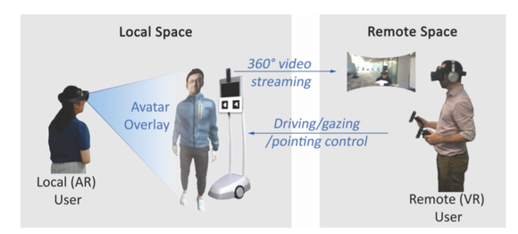 VROOM系统的作用在于,将本地(AR)和远程(VR)用户汇聚到一个时空“场”中,增强使用远程呈现机器人的体验。
