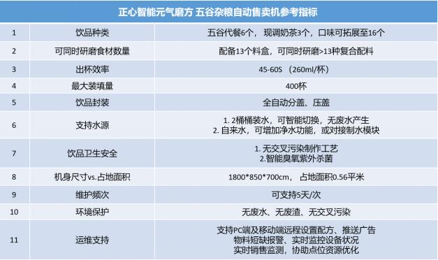 以下是小编整理推荐的正心智能五谷豆浆自动售卖机的参数及特点,供大家投资决策时参考:
